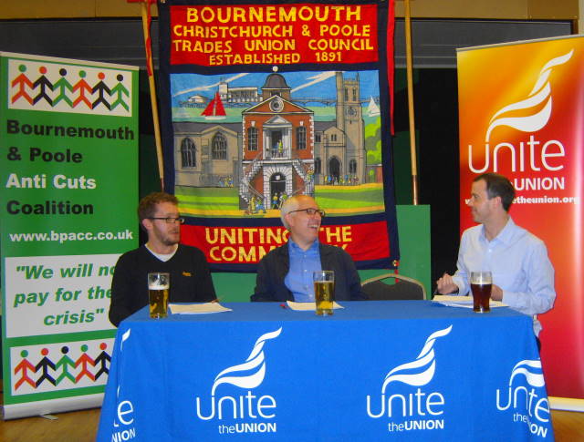 From left: James Meadway (Coalition of Resistance), Neil Duncan-Jordan (BCP TUC President) and Gareth Drinkwater (UNISON Bournemouth Hospital Branch Secretary) before the Solidarity Evening kicks off